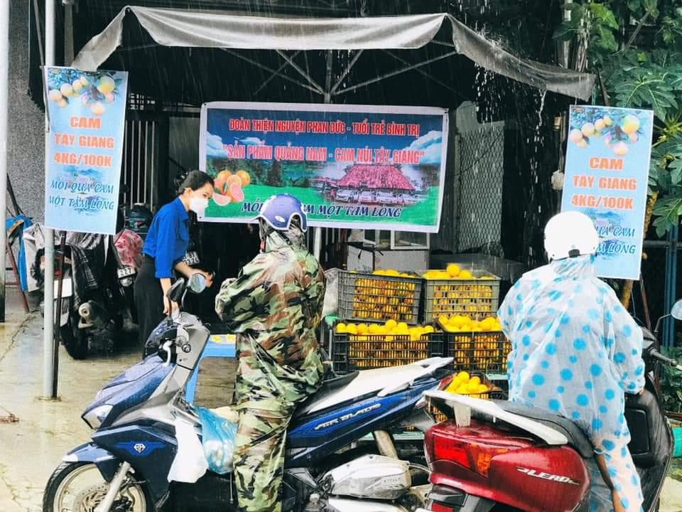 | Nhóm bạn trẻ Bình Trị hỗ trợ tiêu thụ cam cho bà con Tây Giang. |