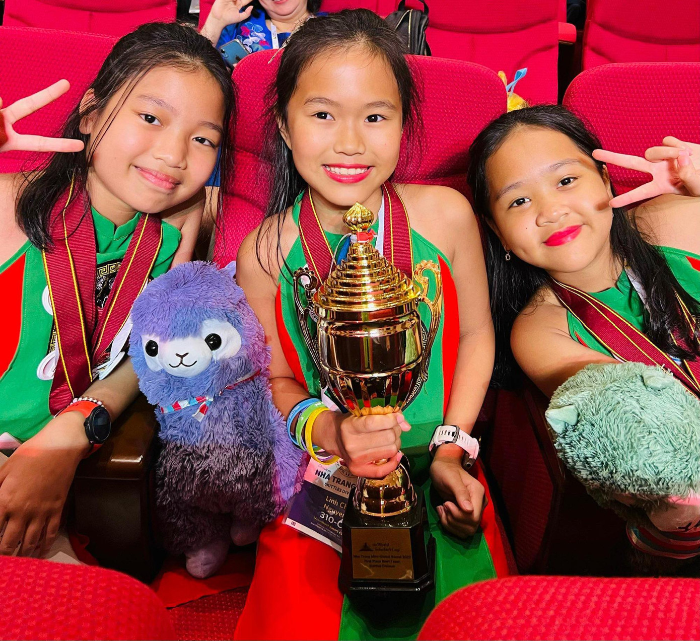 | Thảo My, Linh Chi và An Khanh (từ trái qua phải) vượt qua hàng trăm ứng viên, giành cúp vàng để bước tiếp vào vòng chung kết cuộc thi. Ảnh: NVCC |