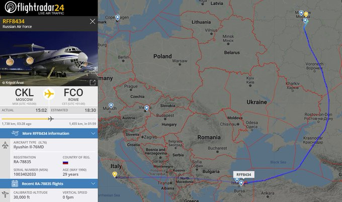 Nga đã gửi 14 máy bay quân sự Il-76 tới Ý Các thông tin lan truyền trên mạng xã hội cáo buộc rằng máy bay Nga đã không thể bay thẳng đến Ý mà buộc phải đi đường vòng xa hơn khoảng 3.000 km so với khi đi qua không phận Ba Lan.
