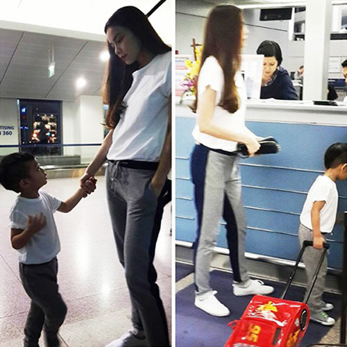 Cậu con trai của Hồ Ngọc Hà trông kháu khỉnh và cá tính bởi được mẹ chăm chút về trang phục. Mỗi khi đi chơi cùng mẹ, Su Beo thường được mẹ của mình chọn cho quần jeans skinny được mix cùng áo thun cổ tròn. Đặc biệt, cả hai mẹ con Hồ Ngọc Hà đều gây ấn tượng bởi phong cách ton sur ton đầy trẻ trung và năng động.