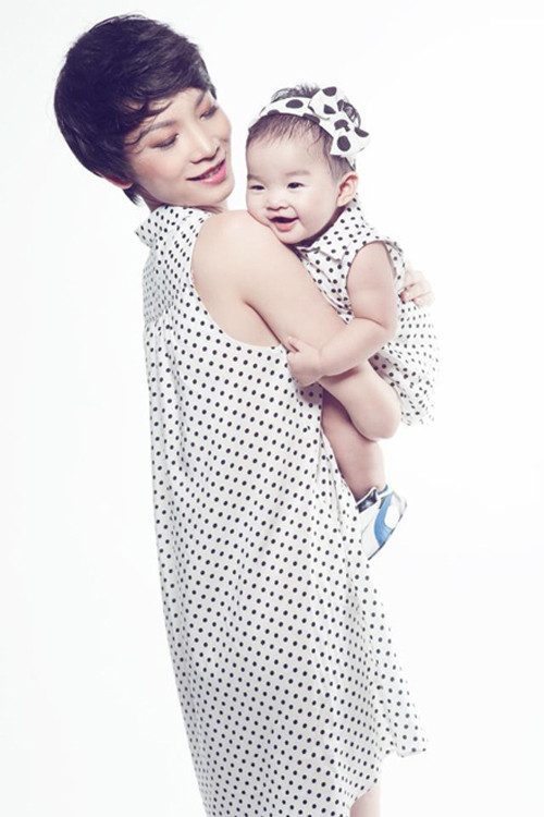 Gam màu trắng dịu mắt cùng các kiểu váy suông nhẹ nhàng thường được cựu người mẫu Xuân Lan chọn cho mình và bé Thỏ. Bên cạnh đó Xuân Lan còn giúp thiên thần nhỏ của mình thêm phần đáng yêu với phụ kiện nơ bướm, băng đô, hoa đội đầu xinh xắn.