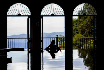 Và du khách cũng có thể tận hưởng giây phút thư giãn tuyệt vời tại bể bơi nước nóng La Grotte nằm trong lòng Làng Pháp và có tầm nhìn hướng ra rừng nguyên sinh