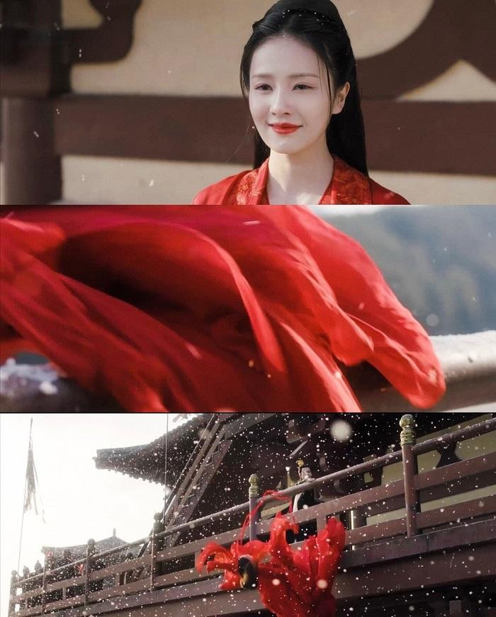 Kết phim, Châu Sinh Thần để lại một bức huyết thư, nói rằng cả đời này chàng chỉ phụ một mình “Thập Nhất”. Thôi Thời Nghi mặc trang phục đỏ tân nương, bi thương mà kiên định leo lên toà thành rồi gieo mình xuống giữa tuyết trời đổ trắng xóa, tựa một bông hoa đẹp nhất rụng rơi. Lời cuối nàng nói là “Châu Sinh Thần, ta đến gả cho chàng đây”.