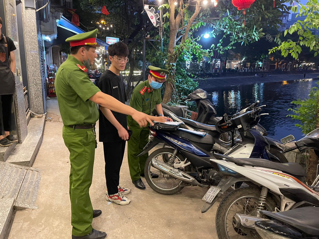 | Công an phường Trung Liệt xử lý các phương tiện dừng đỗ trái phép dưới lòng đường và đường ven hồ. |