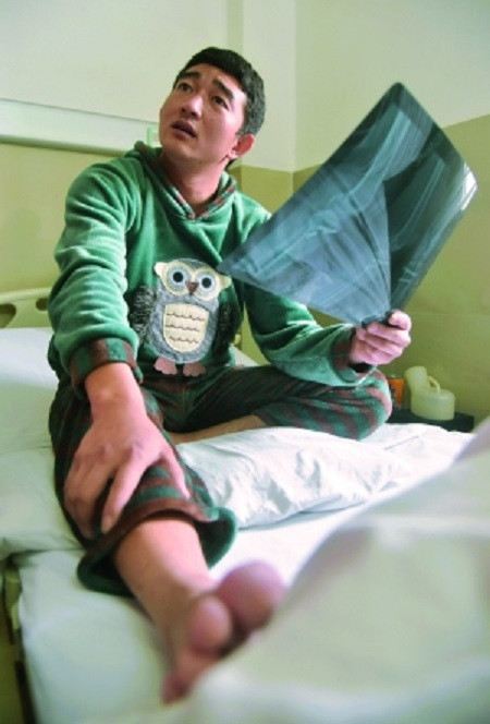 A Phi năm nay 21 tuổi, quê ở tỉnh An Huy, hiện làm việc tại Quảng Châu. Khuya 18/11, sau chầu nhậu say cùng nhóm bạn, Phi bị chấn thương nặng ở chân. Ngày hôm sau, A Phi đến khám tại Bệnh viện Nhân dân Thạch Tỉnh, bác sĩ thông báo bị gãy xương chân phải, chỉ định mổ. Ca phẫu thuật diễn ra sáng hôm sau kéo dài hơn 3 tiếng đồng hồ.