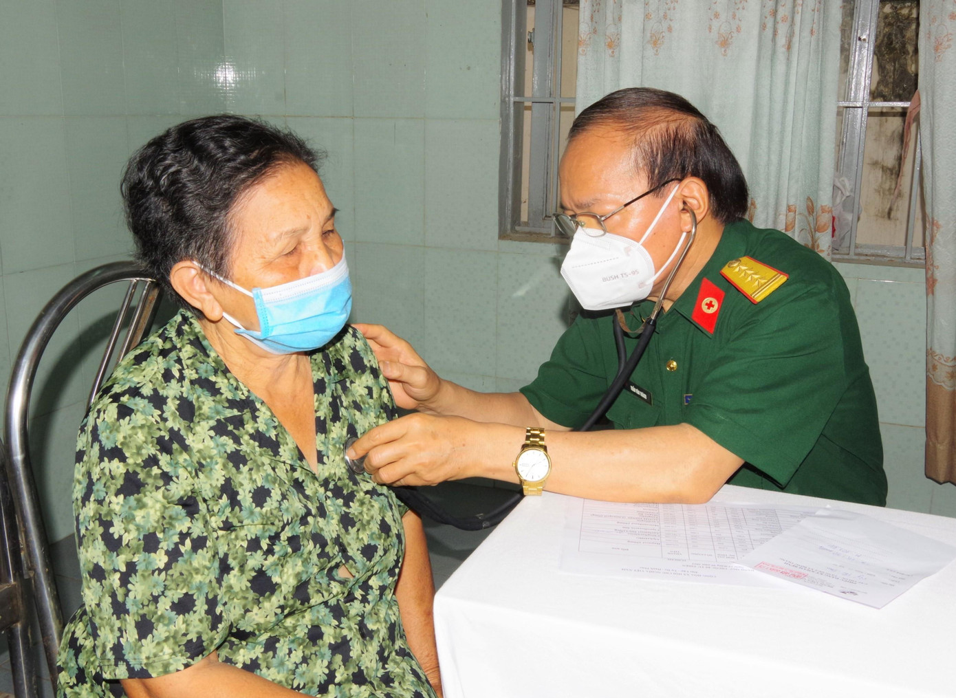 | Bác sĩ áo lính chăm sóc sức khỏe bà con nhân dân. |