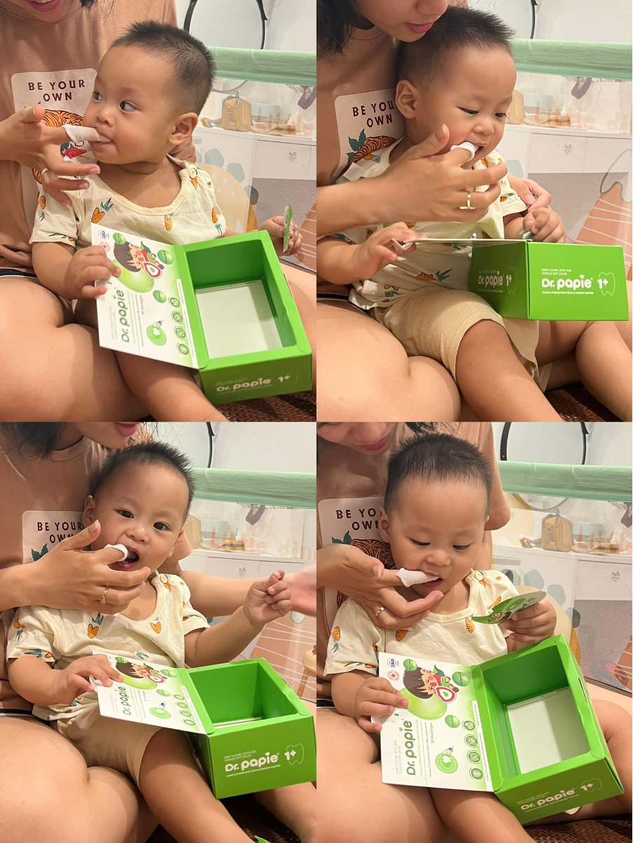 | Gạc chống sâu sún răng Dr.Papie 1+ là giải pháp chăm sóc răng miệng toàn diện cho trẻ từ 1 tuổi, kết hợp làm sạch mảng bám và tái khoáng hóa men răng với bộ đôi Fibregum B và Lactoferrin, giúp ngăn ngừa sâu sún răng hiệu quả. |
