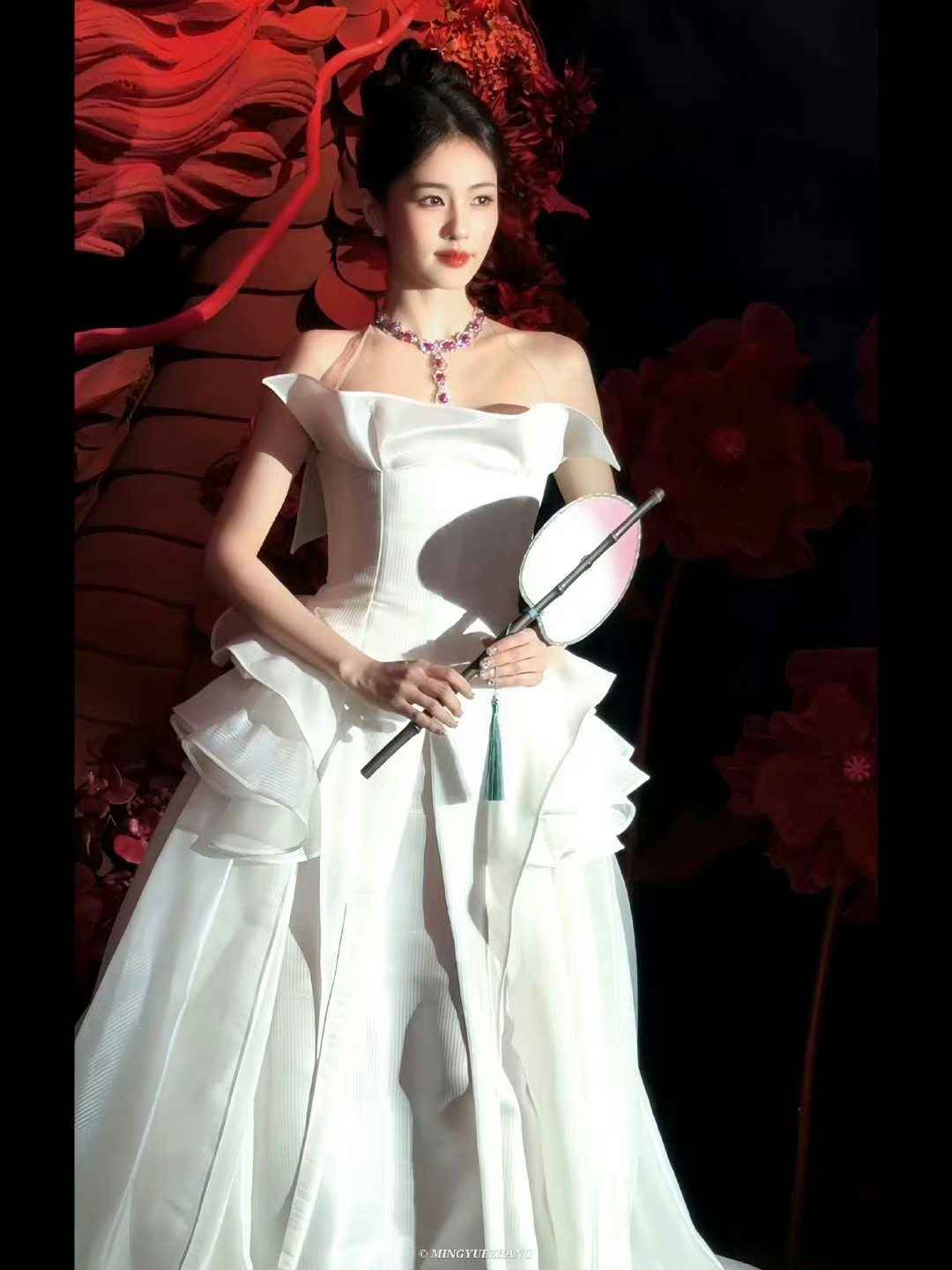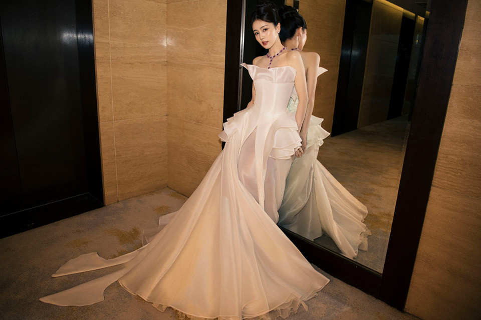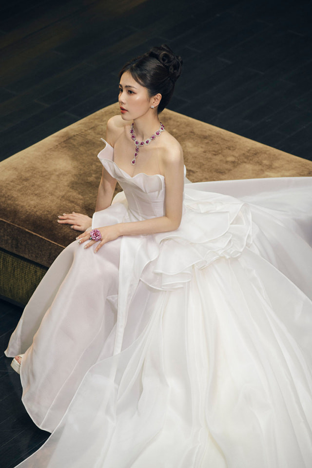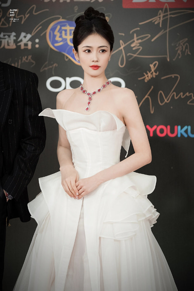 Chiếc đầm Bạch Lộc mặc thuộc BST Haute Couture Thu Đông 2022 của Julien Fournié, vòng cổ tới kiểu tóc đều giúp khoe trọn nét đẹp của nữ diễn viên.