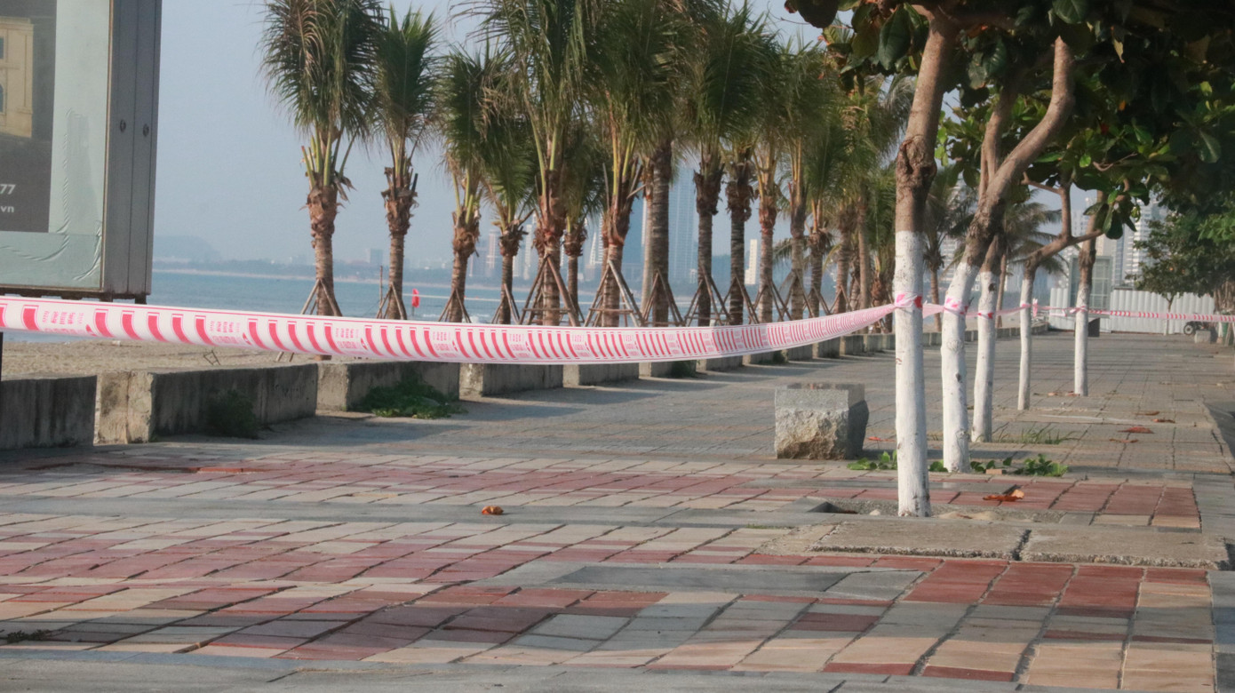 | Công viên Biển Đông vốn đông đúc người dân tập thể dục, đi bộ, tắm biển vào mỗi buổi sáng, nay vắng vẻ sau khi có lệnh cấm tắm biển của chính quyền địa phương. |