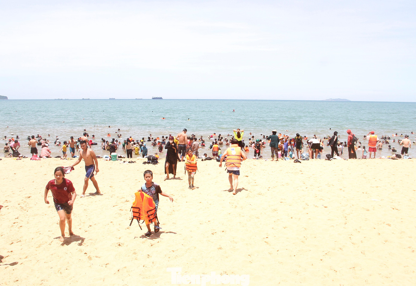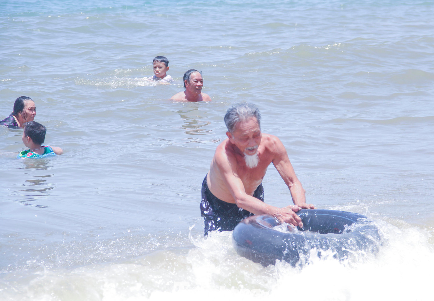 | Theo ghi nhận, 12h trưa, hàng ngàn người dân từ người già, thanh thiếu niên cho đến trẻ em kéo nhau xuống biển tắm. Ảnh: Trương Định |