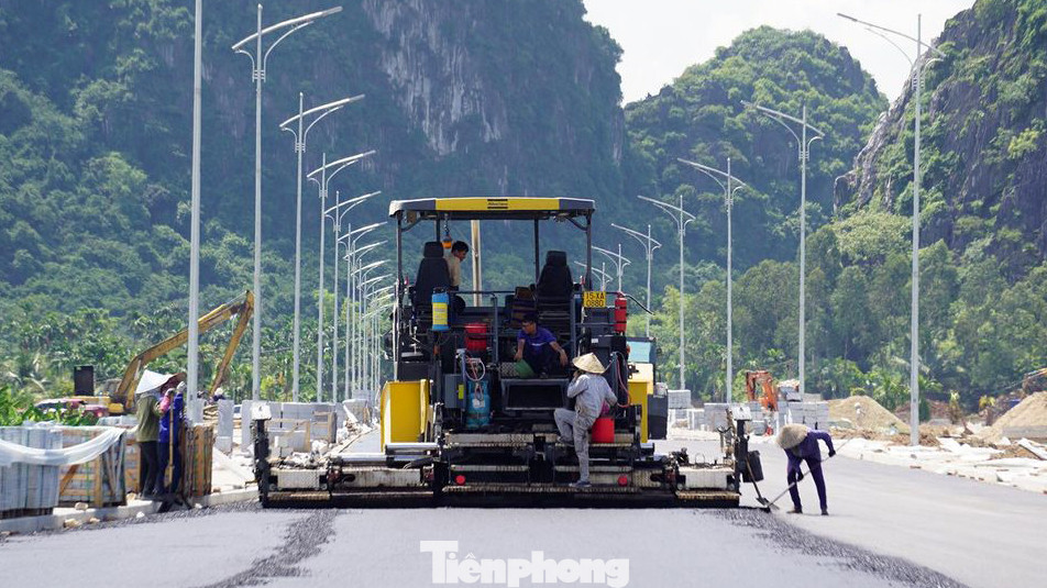 Đây là một trong nhũng dự án trọng điểm chào mừng Đại hội Đảng bộ TP Hải Phòng. Theo ghi nhận của Tiền Phong những ngày cuối tháng 9, công trình đang được các đơn vị thi công gấp rút hoàn thiện trải thảm mặt đường và các hạng mục liên quan.