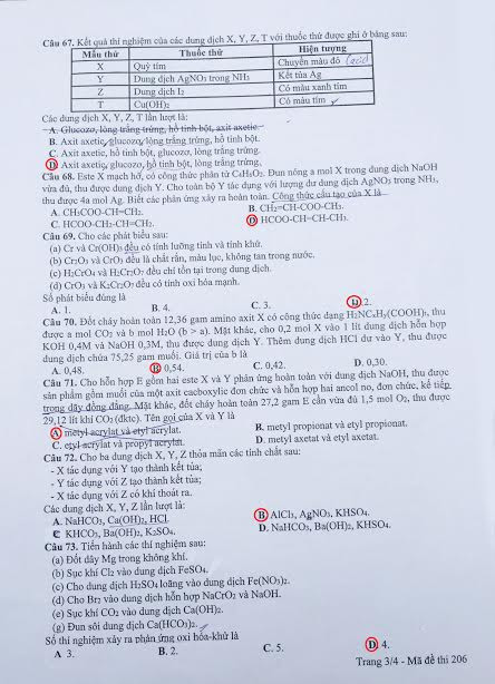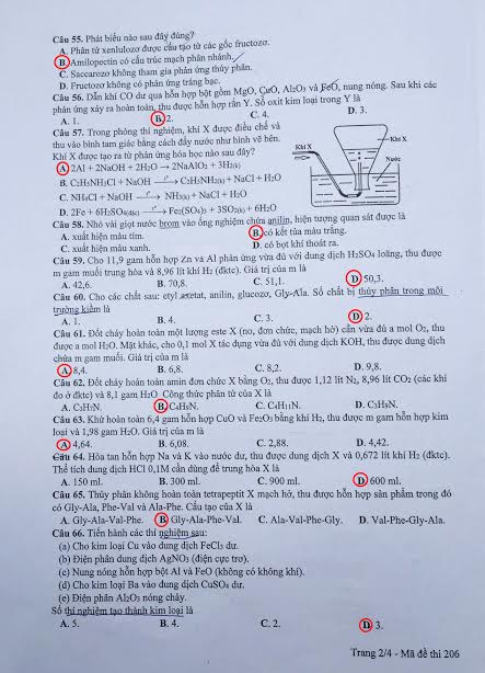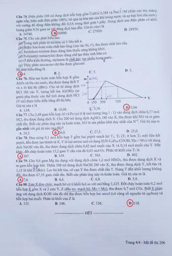 -         Một số câu hỏi như 36 mã đề 206; câu 33 mã đề 201 đòi hỏi học sinh phân tích được hiện tượng, dễ sai sót do tính toán.