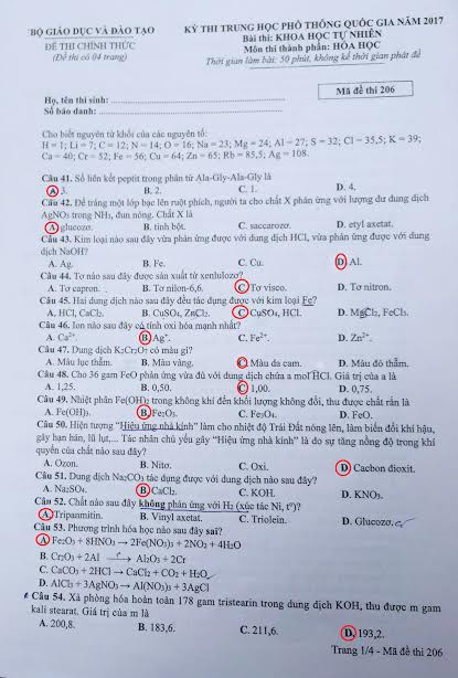 Bài giải, nhận định đề thi môn Hóa học THPT Quốc gia 2017