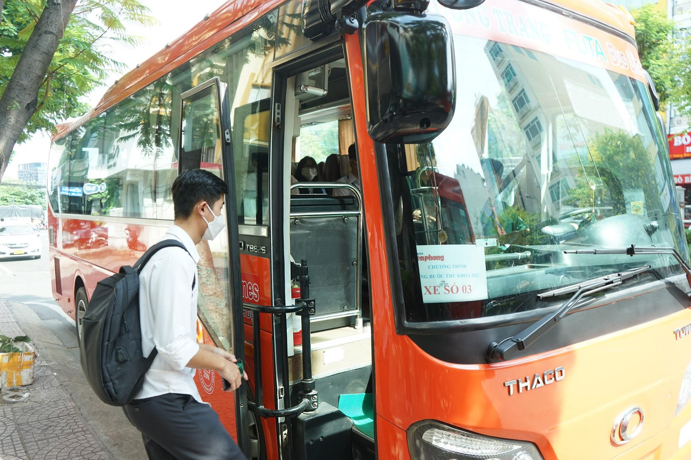 | Chương trình còn nhận được sự hỗ trợ của Công ty CP xe khách Phương Trang trong việc đưa đón các sinh viên về TP. HCM dự chương trình Lễ vinh danh 'Nâng bước thủ khoa' 2022. (Ảnh: Phong Nguyễn) |