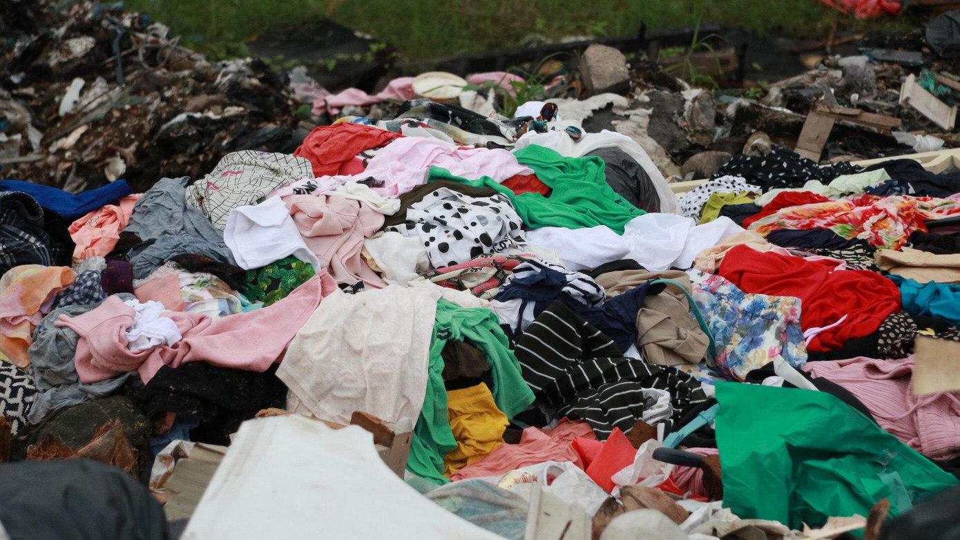 Những chiếc túi ni-lon, rác thải nhựa do người dân tự đốt vẫn chưa cháy hết, còn nguyên mùi khét lẫn cùng với mùi thối.