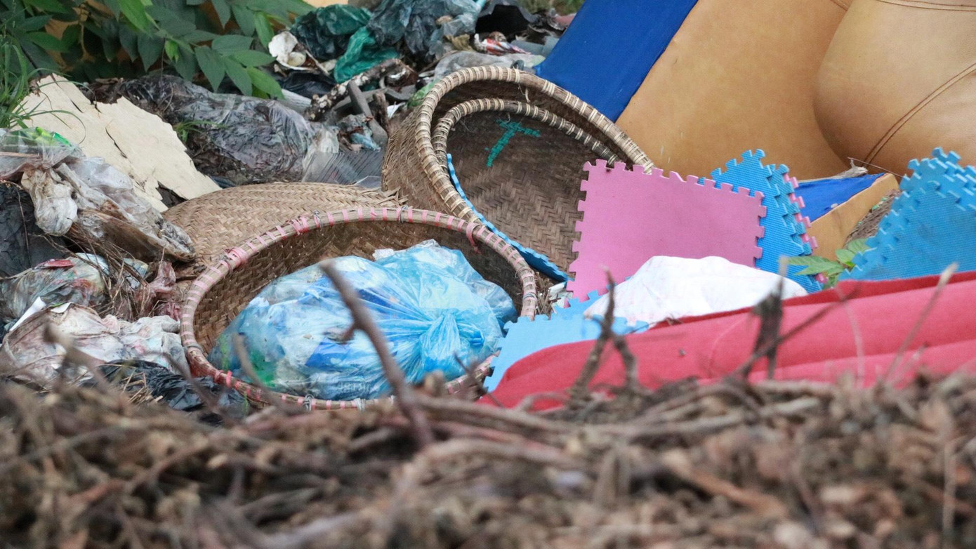 Rác đủ các loại từ bao bì, chai lọ đến lốp xe, chăn mềm, quần áo, bàn ghế cũ cũng đươc người dân thẳng tay vứt ra.