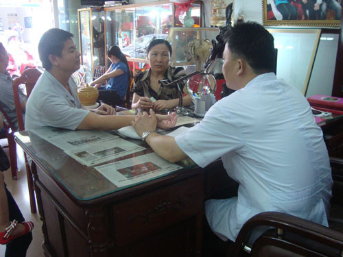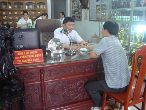 | Lương y Hùng khám bệnh cho bệnh nhâ. |
