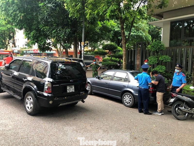 | Tổ công tác kiểm tra tại bãi trông ô tô có treo biển nhưng không phép ở phía Đông Bắc tòa nhà VP6. |