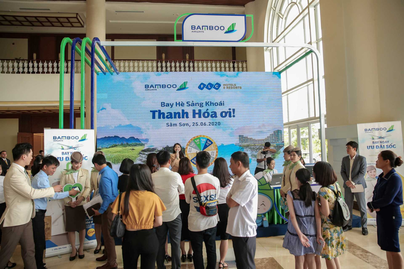 Riêng tại Thanh Hóa, hoạt động roadshow của Bamboo Airways còn nằm trong khuôn khổ chương trình “Lễ công bố Tour du lịch và phát động chương trình kích cầu nội địa năm 2020” do UBND tỉnh Thanh Hóa tổ chức tại Trung tâm hội nghị quốc tế, FLC Sầm Sơn, tỉnh Thanh Hoá nhằm quảng bá tour tuyến mới để thu hút du khách trong tỉnh và khách du lịch từ các địa phương trong cả nước đến với Thanh Hóa. Trong khuôn khổ chương trình, Bamboo Airways đã tổ chức gian hàng để giới thiệu và tư vấn các sản phẩm, dịch vụ cho khách hàng cũng như tổ chức. Tại gian hàng, rất nhiều hoạt động thú vị mang tới những phần quà giá trị đã được Bamboo Airways tổ chức, với mong muốn cung cấp thêm cho khách hàng những thông tin chi tiết và cập nhật nhết về Bamboo Airways cũng như các sản phẩm của hãng.