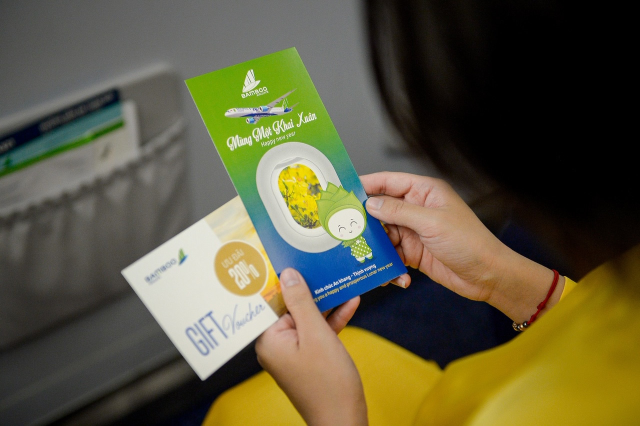 Mong muốn được là một phần ý nghĩa của phong tục đẹp này, trên những chuyến bay đầu năm mới Canh Tý, Bamboo Airways đã dành tặng gần 1.000 món quà lì xì may mắn cho hành khách là voucher vé máy bay ưu đãi đi kèm với những lời chúc tân niên vui vẻ.