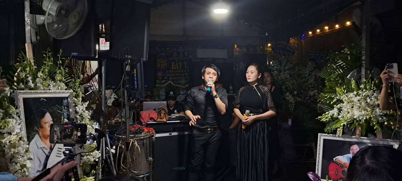 Do không có nhà riêng nên đám tang của "Vua nhạc sến" Vinh Sử được tổ chức tại nhà một người thân của gia đình vợ.