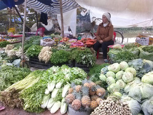 Ở các chợ, giá rau rẻ tới mức người thành phố không thể tưởng tượng nổi. Chị Hoa, một người buôn rau ở chợ cho biết, gần 1 tháng trở lại đây, giá rau giảm mạnh vì không mang đi bán nơi khác được, chủ yếu người dân tiêu thụ ở trong huyện mình.