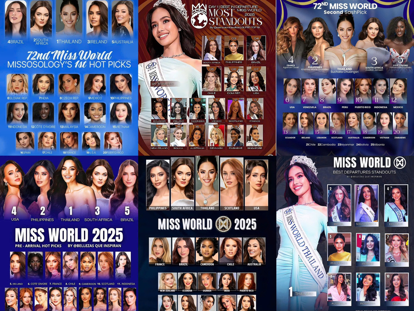 Vậy là Miss World 2025 đã khởi động, các thí sinh đã có mặt tại Ấn Độ để sẵn sàng tham dự các hoạt động của cuộc thi. Và các chuyên trang sắc đẹp đã nhanh chóng đưa ra những dự đoán ban đầu về các gương mặt nổi bật nhất. Thường là mỗi chuyên trang lại có những nhận định khác nhau, nhất là khi chọn ra các ứng cử viên sáng giá cho vương miện.