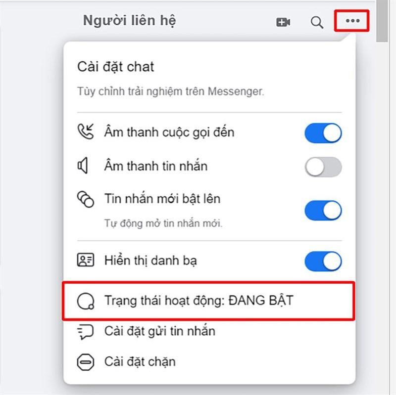Bước 1: Đầu tiên bạn nhấn kích chọn biểu tượng 3 chấm ngay tại mục Người liên hệ > Chọn Trạng thái hoạt động.