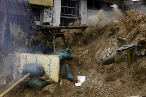 Một cảnh sát Iraq phóng tên lửa về khu vực của tổ chức Nhà nước Hồi giáo tự xưng (IS) ở tây Mosul hôm 12/4.