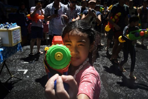 Em bé cầm súng phun nước vui đùa dịp lễ hội Songkran, lễ hội mừng năm mới ở Bangkok, Thái Lan.