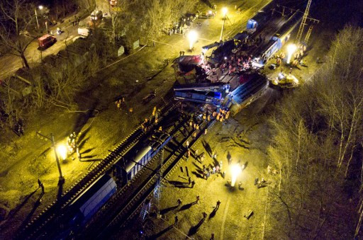 Hiện trường nhìn từ trên cao vụ hai tàu hỏa đâm nhau ở Moscow, Nga hôm 9/4 khiến 12 người bị thương.