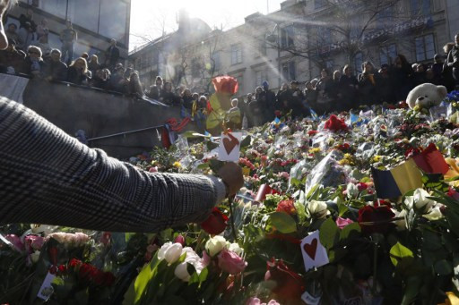 Người dân đặt hoa tưởng niệm gần trung tâm thương mại Sergels Torg, Stockholm, Thụy Điển hôm 9/4, hai ngày sau vụ xe tải lao vào đám đông người đi bộ khiến 4 người thiệt mạng. Vụ việc được cảnh sát xác định là tấn công khủng bố.