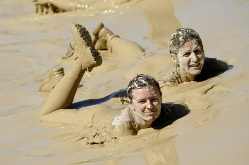 Hai phụ nữ tham dự lễ hội Ngày Bùn ở Lac de Peyrolles, miền nam nước Pháp.