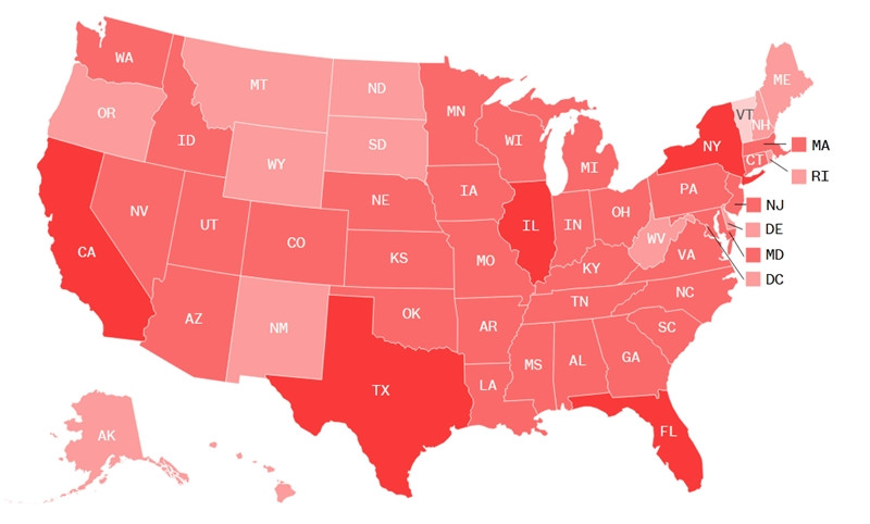 Mặc dù có một số bang đang ở tình trạng nặng nề hơn, nhưng theo bản đồ được đưa ra bởi các Bộ An ninh Nội địa, Y tế và Dịch vụ Nhân sinh, thì gần như mọi bang ở Mỹ đều có nhiều hạt được đánh dấu là “điểm nóng duy trì”.