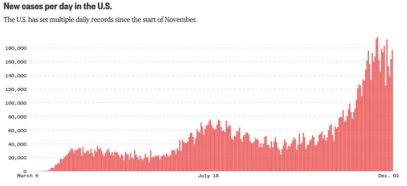 Đã có đến 270.000 người tử vong vì COVID-19 ở Mỹ (tính đến ngày 1/12, theo NBC), và người ta sợ rằng những ngày tồi tệ nhất còn chưa đến. CDC (Trung tâm Kiểm soát và Phòng ngừa Dịch bệnh) cho rằng, số ca tử vong ở Mỹ có thể lên tới 321.000 vào giữa tháng 12.