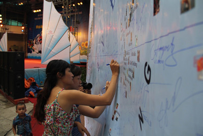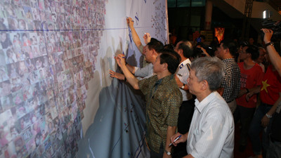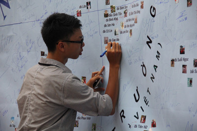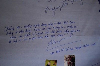Thứ trưởng Bộ Văn Hóa, Thể Thao và Du lịch Huỳnh Vĩnh Ái cùng đông đảo người dân, từ trẻ tới già đã trực tiếp ký tên trên tấm bản đồ kỷ lục, nhằm gửi gắm những tình cảm đến với đồng bào chiến sỹ miền biển đảo, thể hiện tình yêu quê hương đất nước, lòng tự hào dân tộc và khẳng định chủ quyền đất nước.