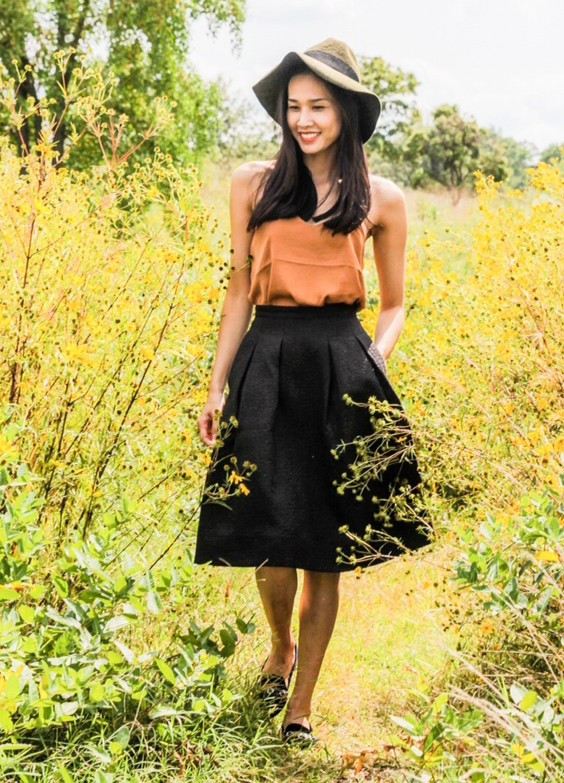 Trong bộ ảnh được chụp ở ngoại ô Washinton DC, người đẹp diện bộ cánh áo hai dây đơn giản, chân váy xòe nữ tính thể hiện hình ảnh nhẹ nhàng.