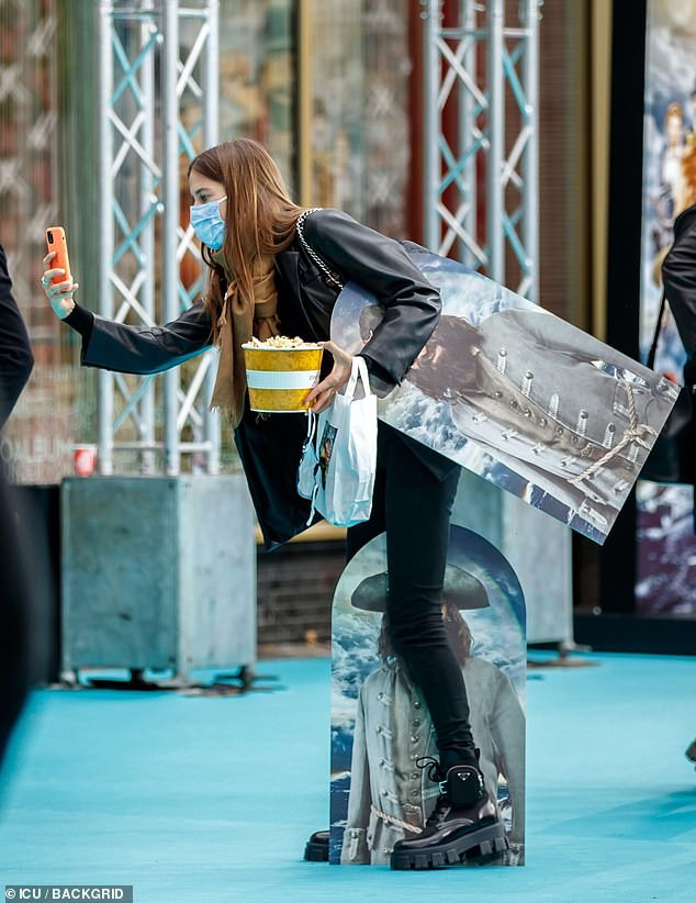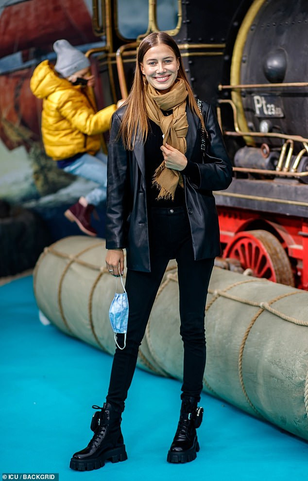 Nicole Poturalski nở nụ cười tươi rạng rỡ như mùa thu tỏa nắng, trang phục đen mạnh mẽ năng động khi đến dự lễ ra mắt phim ở Berlin (Đức) cách đây ít ngày.