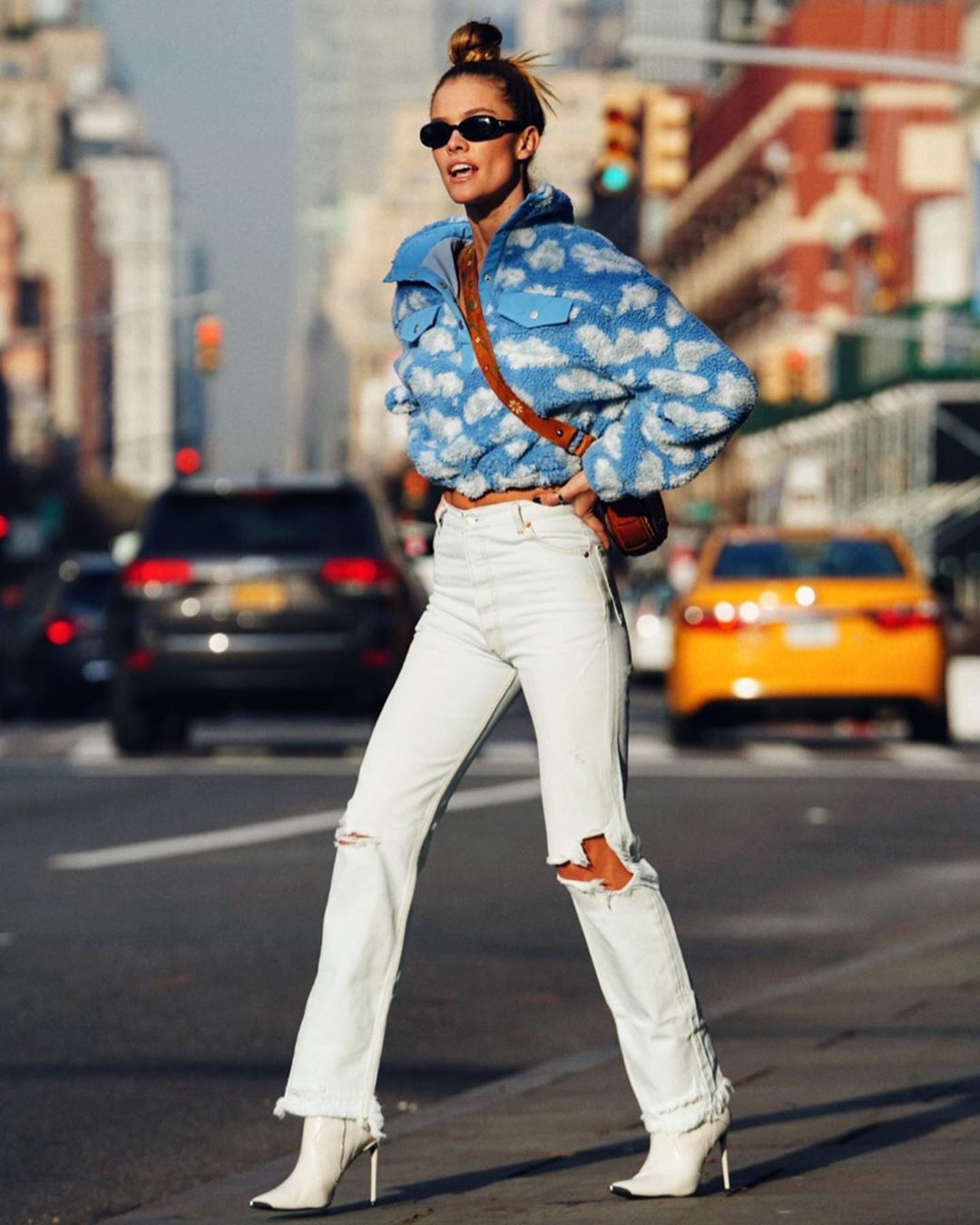 Cao gần 1m80, người mẫu sinh năm 1992 sải bước lênh khênh trên phố.