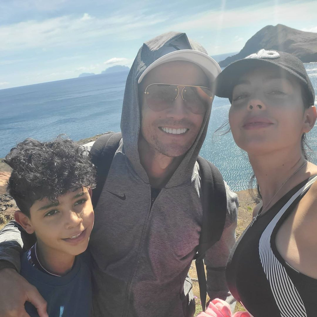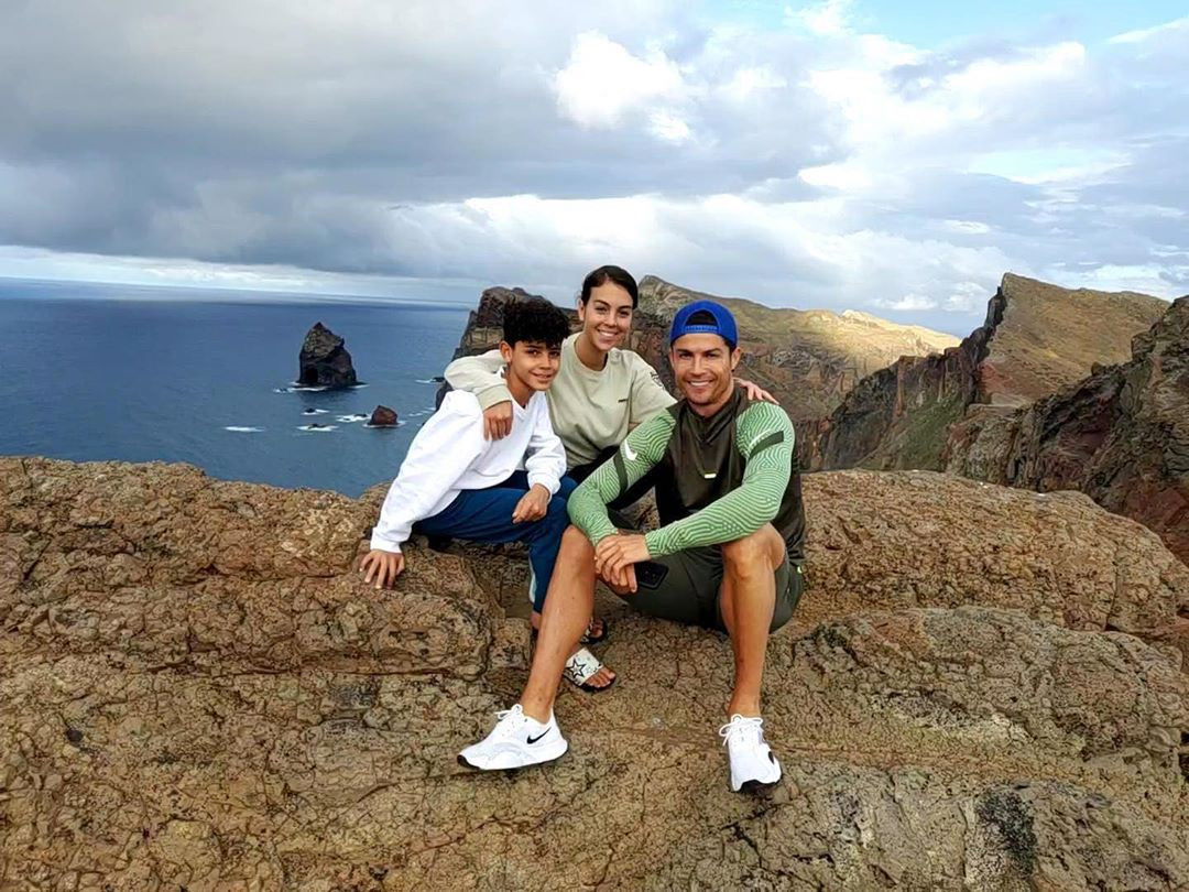 Đôi uyên ương cùng con trai đầu của Ronaldo đi leo núi ở Punta De san Lorenzo.