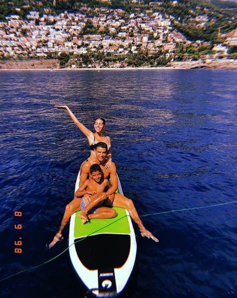 Trước đó, gia đình Ronaldo tắm nắng và chơi các môn thể thao dưới nước.
