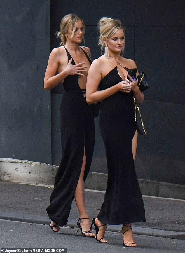 | Madeline Holtznagel (trái) và chị gái Simon Holtznagel (cũng là người mẫu nội y đình đám Úc) đều mặc váy đen cắt xẻ ngực gợi cảm. |