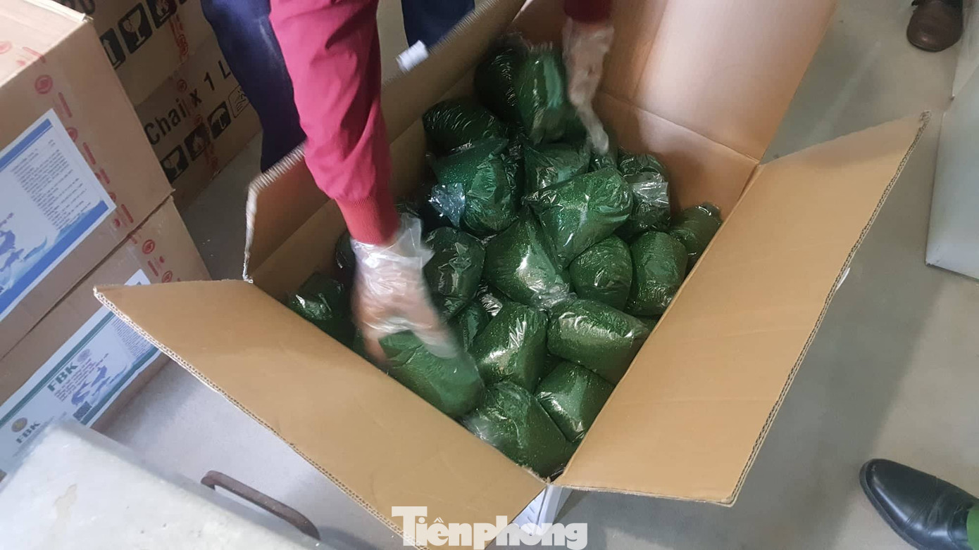 Tiến hành kiểm tra cửa hàng, công an Nam Định tiếp tục phát hiện đại lý Tuân Hương đang cất giữ tổng cộng 26 kg hóa chất Green Malachite, trong tình trạng đóng gói trong bao nilon, không tem nhãn.