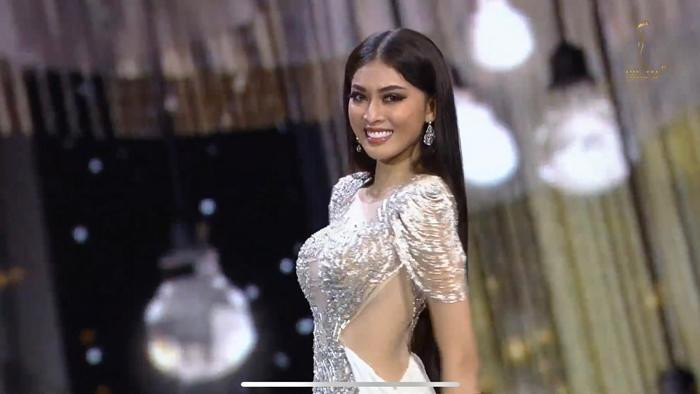 Sải bước vô cùng lộng lẫy với thiết kế của NTK Linh San, cách xử lý trang phục đầy thông minh với màn hất váy ấn tượng cũng nhận về vô số lời khen ngợi.