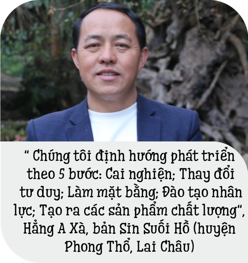 “Người ta làm hiện đại bao nhiêu thì Sin Suối Hồ làm đơn sơ bấy nhiêu. Nếu bên ngoài tràn lan thực phẩm bẩn bao nhiêu thì ở bản chúng tôi làm hàng hóa chất lượng và đảm bảo nguồn gốc bấy nhiêu. Bởi chúng tôi mong muốn tạo ra những sản phẩm về du lịch, dịch vụ chất lượng để đem hạnh phúc đến cho nhiều người hơn khi họ đặt chân đến với người Mông ở Sin Suối Hồ", Hẳng A Xà, bản Sin Suối Hồ.