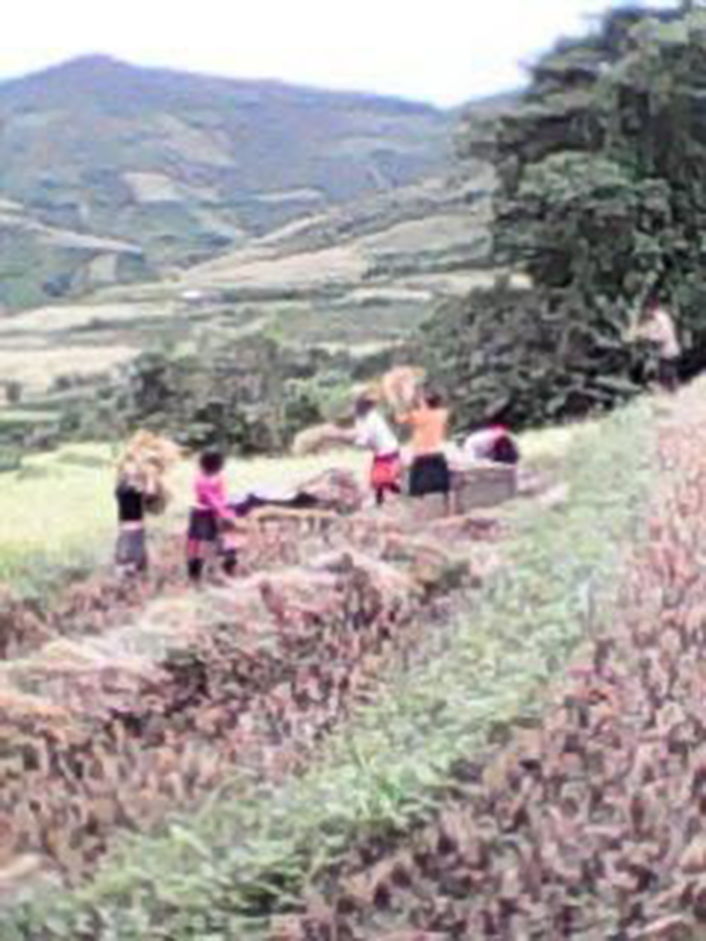 Cả bản đều là hộ nghèo “bền vững”, quanh năm chỉ trông chờ vào vụ lúa duy nhất, hết mùa lại hò nhau vào rừng hái thảo quả, tìm phong lan, địa lan,…Trong nhà, ngoài ngõ gia súc, gia cầm thả rông khắp nơi. Trẻ em không được đến trường mà phải vội đi lấy chồng, lấy vợ.