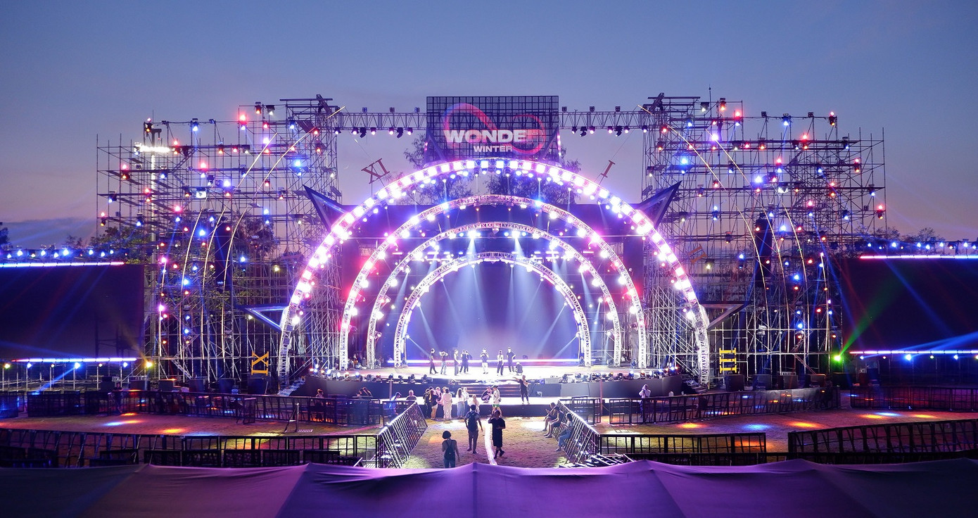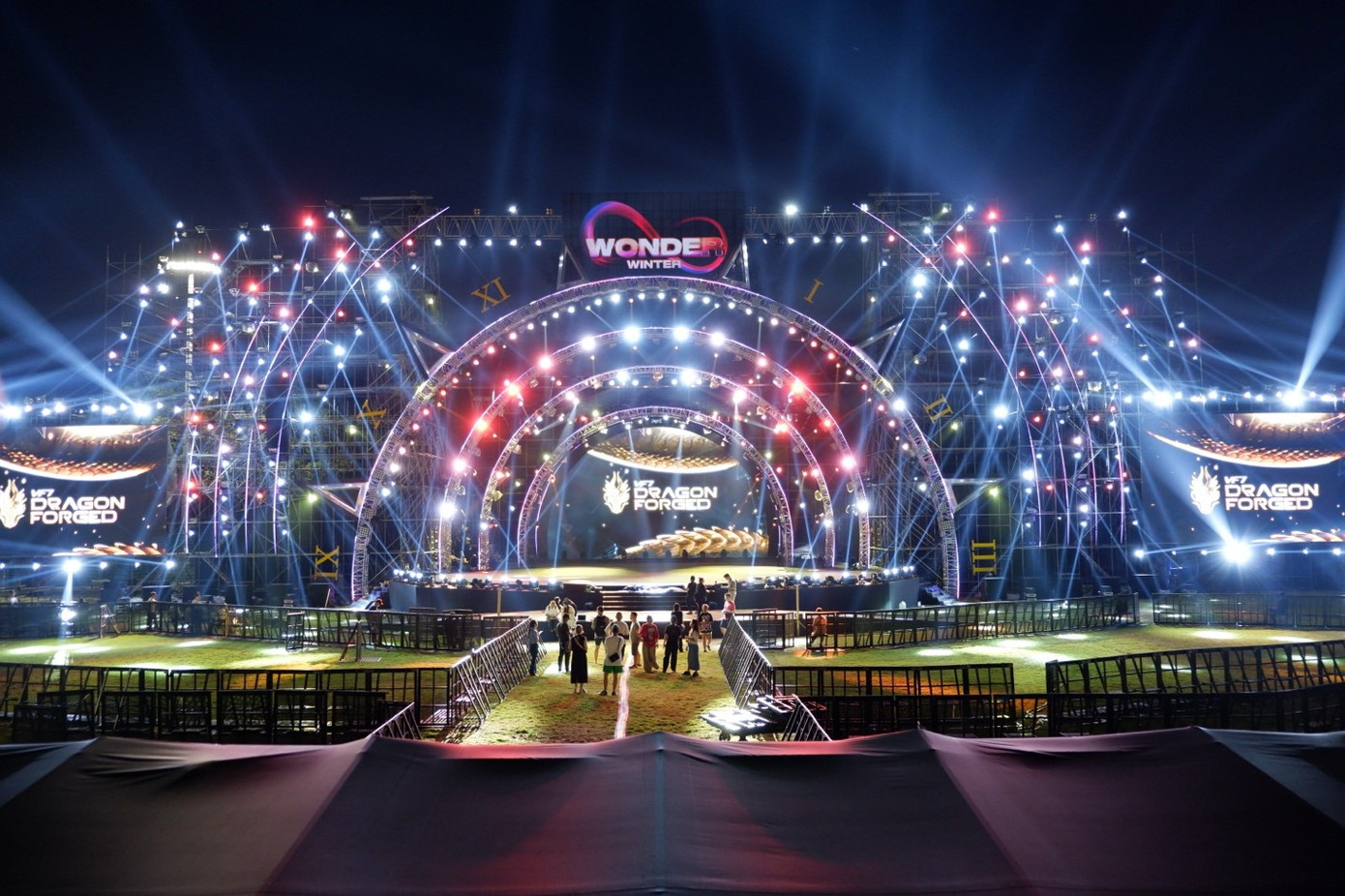 Ngay từ tối 14/12, sân khấu “Hỗn thiên cầu” hình đồng hồ cổ khổng lồ của 8Wonder được kiểm tra ánh sáng lần đầu tiên, khoe vẻ đẹp lộng lẫy hoàn hảo, sẵn sàng cho “chuyến du hành thời gian” của hàng chục nghìn du khách với âm nhạc bất hủ của Maroon 5. Những bước cuối cùng cũng đang được gấp rút hoàn thiện để sẵn sàng chào đón “biểu tượng âm nhạc toàn cầu” và những nghệ sĩ đình đám của Vbiz.