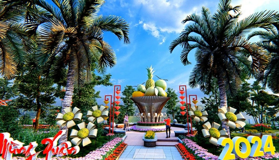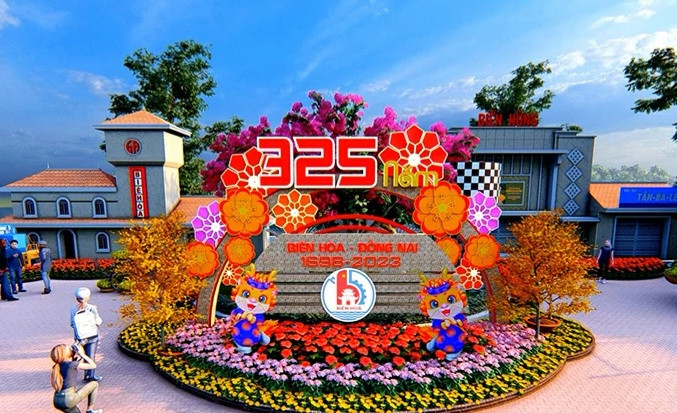 Theo đó, đường hoa có chiều dài gần 600 m được trang trí dọc theo công viên Nguyễn Văn Trị được trang trí với một cổng chào, 5 mô hình trung tâm và 14 tiểu cảnh theo 3 chương gồm các chủ đề đề Mừng Đảng, mừng Xuân Giáp Thìn 2024, Vườn cổ tích và 325 năm Biên Hòa – Đồng Nai.