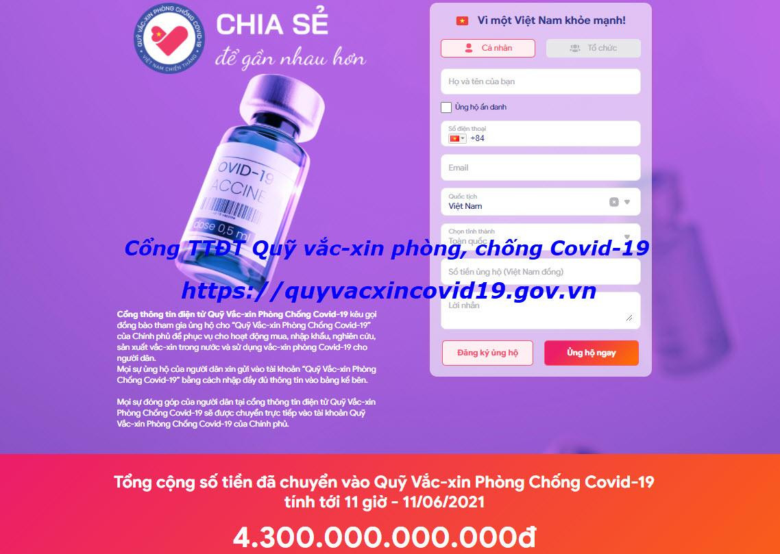 - Cổng thông tin điện tử: https://quyvacxincovid19.gov.vn