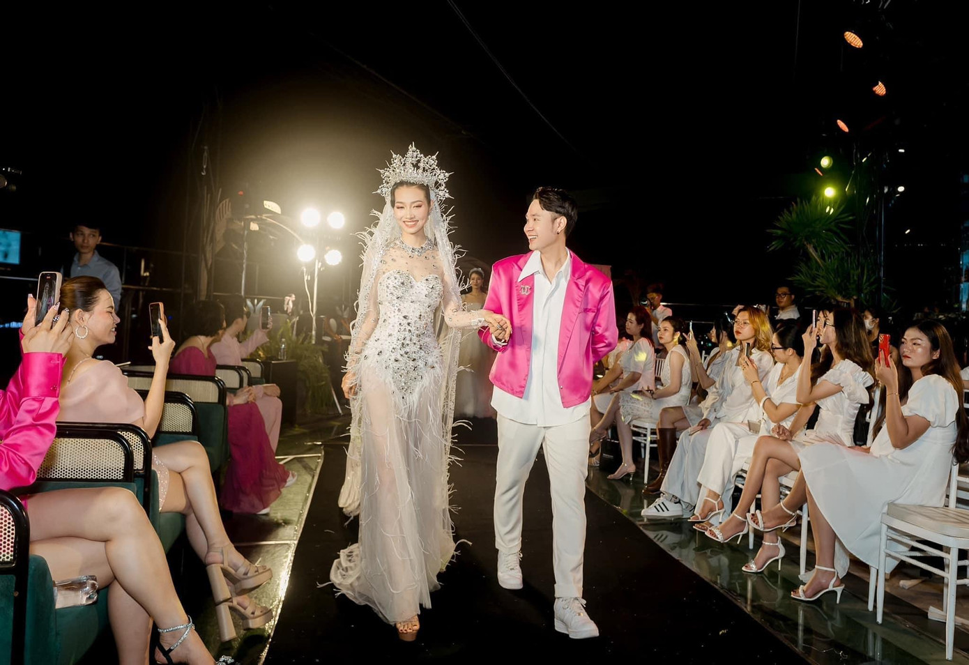 | Kiều Vỹ tái xuất khi làm vedette trên sàn diễn thời trang. |